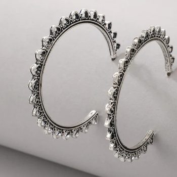 Fleepmart Vintage Silver Color Heart Hoop Earrings for Women Charms Hollow Out Geoemtry Alloy Metal Party Jewelry