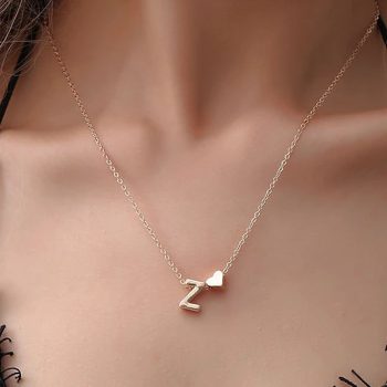 Fleepmart Fashion Tiny Heart Dainty Initial Letter Name Necklaces Choker Chain Necklace For Women Gold Color Pendant Jewelry Gift Collier