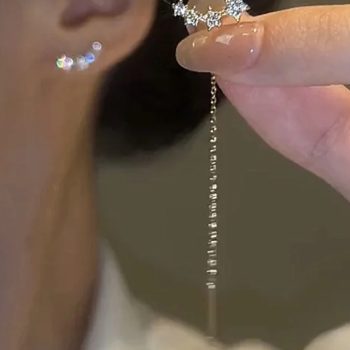 Fleepmart Charming Rhinestone Tassel Drop Earrings for Women Fashion Geometric Alloy Earrings Wedding Jewelry серьги 2020 тре