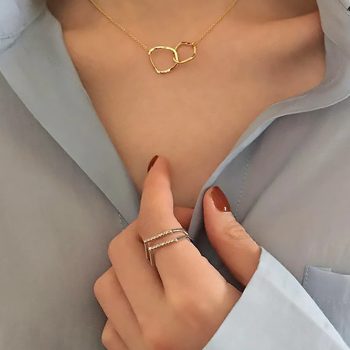 Fleepmart 2022 new today0Double Circle Interlock Clavicle Short Necklace Gold Silver Color Necklace For Women collares 2021 Jewelry