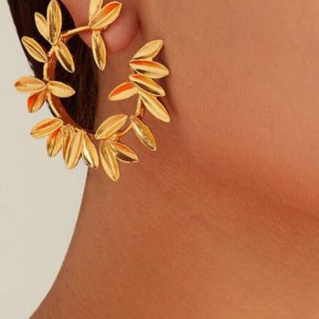 Fleepmart Gold Leaves Ear Cuff Black Non-Piercing Ear Clips Fake Cartilage Earrings Clip Earrings For Women Men Wholesale Jewelry