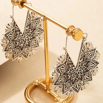 Fleepmart Bohemia Tribal Hollow Lotus Flower Drop Earrings for Women Vintage Antique Carved Circle Dangle Earring Pendientes