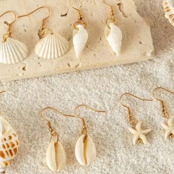 Fleepmart 5pair/sets Bohemian Conch Shell Earrings Set for Women Exuquisite Starfish Summer Jewelry Accessories
