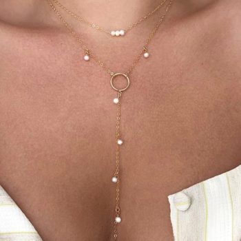 Fleepmart Fashion Long Pearl Necklace For Women Boho Multilayered Pearl Pendant Necklace 2022 Trend Choker Sweater Chain Jewelry