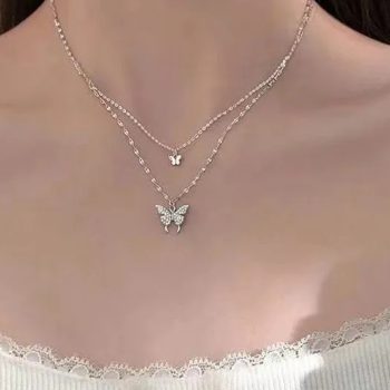 Fleepmart New Shiny Butterfly Necklace Ladies Exquisite Double Layer Clavicle Chain Necklace Jewelry for Ladies Gift