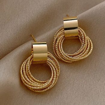 Fleepmart Retro Metal Gold Color Multiple Small Circle Stud Earrings for Women Korean Jewelry Fashion Wedding Party Earrings Jewelry Gift