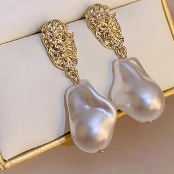Fleepmart Irregular Water Droplet Imitation Pearl Dangle Earrings for Women Geometry Oval Metal Sheet Drop Earrings Party Retro Jewelry