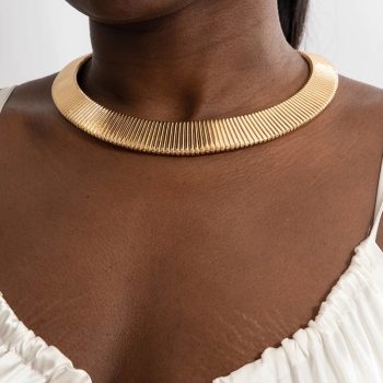 Fleepmart Vintage Exaggerated Gold Silver Colour Chunky Choker for Women Striped Collar Necklace with Adjustable Chain Jewelry