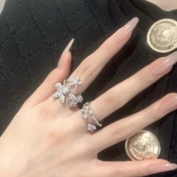 Fleepmart Silver Color Crystal Rings Set for Women, Cubic Zirconia Moon Arrow Flower Heart Finger Wedding Rings, Female Fashion Jewelry