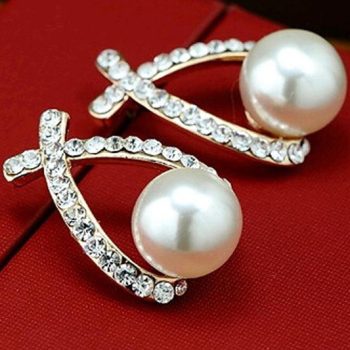 Fleepmart Korea New Fashion Gold Silver Color Cross Crystal Drop Earrings for Women Elegant Cute Pearl Earrings Brincos Jewelry