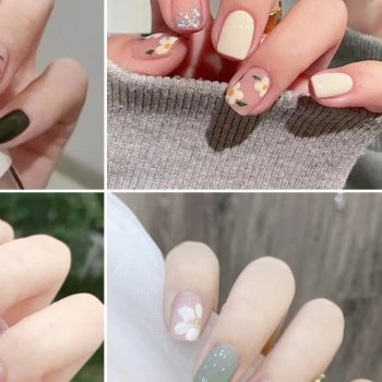 Fleepmart 4 Style/lot White Flower FranceShort Ballet Press on Nails Reusable False Nail Removable Fake Nail Short Round Coffin Nails Art