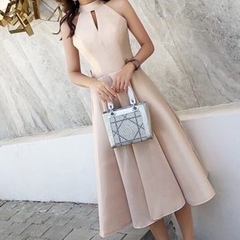 Fleepmart New Arrival Sexy Halter Sleevless Tea-length Satin Prom Dresses Woman Party Short Elegant Formal Gowns Vestidos