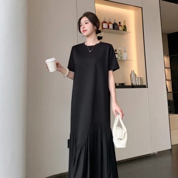 Fleepmart 2025 Summer New Korea Irregular Woman Dress Vestidos Robe Elbise Loose Plus Size Patchwork Short Sleeve Long Dress