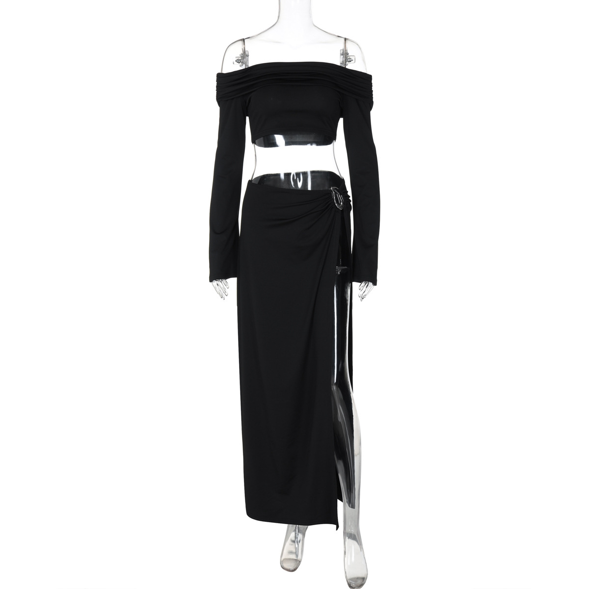 Fleepmart Women’s Solid Beach Skirt Sets Sexy High Split Slim Bohemian Outfits Off The Shoulder Holiday Fashion 2 Piece Set Beachwear