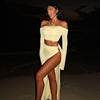 Fleepmart Women’s Solid Beach Skirt Sets Sexy High Split Slim Bohemian Outfits Off The Shoulder Holiday Fashion 2 Piece Set Beachwear