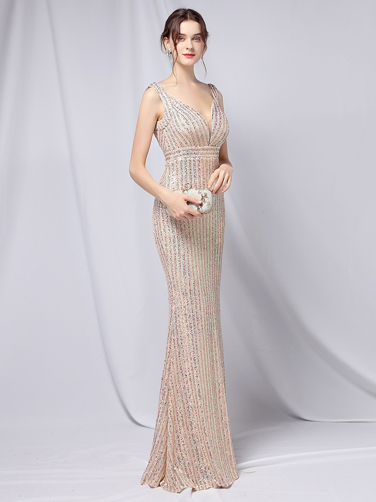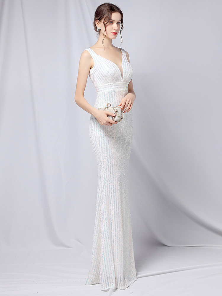 Fleepmart Sexy V Neck Sequin Evening Dress 2022 New Women Party Bodycon Maxi Dress White Wedding Long Prom Dress
